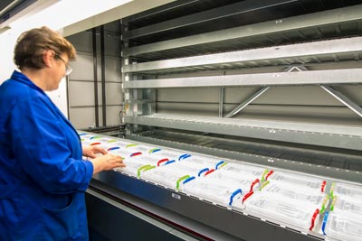 The system perfectly suited the requirements for space saving, safe storage, quick access, automatic FIFO and live information about the available stocks.